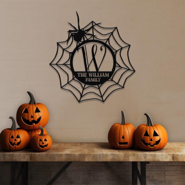Metal Sign Spider Web Halloween Name Sign, Personalized Name LED Lights, Halloween Sign, Outdoor Door Monogram, Halloween Metal sign