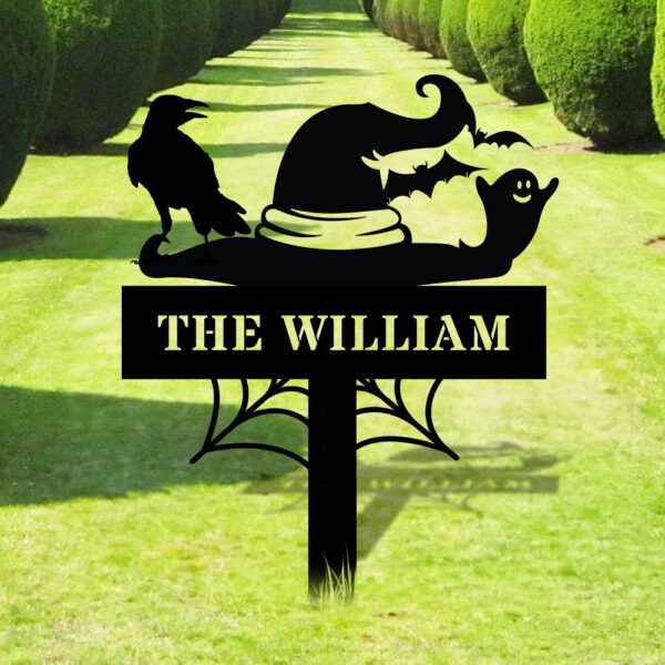 Metal Sign Witches Hat Halloween Name Sign, Personalized Name LED Lights, Halloween Sign, Outdoor Door Monogram, Halloween Metal sign