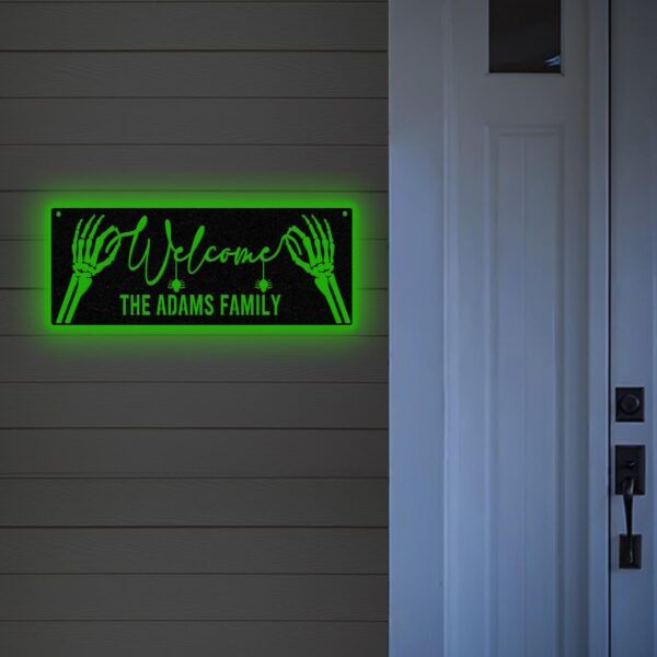 Personalized Family Name Skeleton Halloween Metal Wall Art Led Light, Custom Halloween Sign, Halloween Party Decor, Custom Welcome Sign