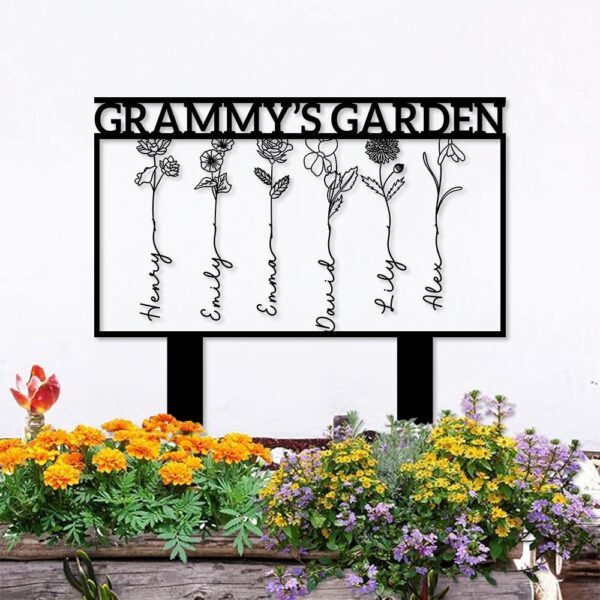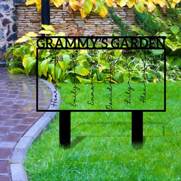 Nana’s Garden Flower Metal Sign Personalized Family Name Metal Sign, Family LED Wall Decor, Personalized Wall Art, Housewarming Family Name