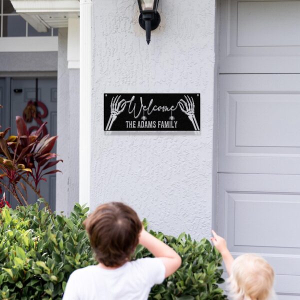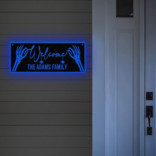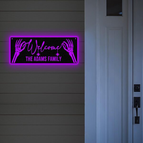 Personalized Family Name Skeleton Halloween Metal Wall Art Led Light, Custom Halloween Sign, Halloween Party Decor, Custom Welcome Sign