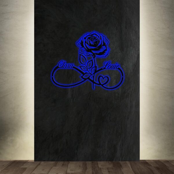 Personalized Infinity Rose Led Light Metal Sign, Couple Name Sign, Family Established, Custom Love Wall Art, Engagement Gift, Wedding Gift