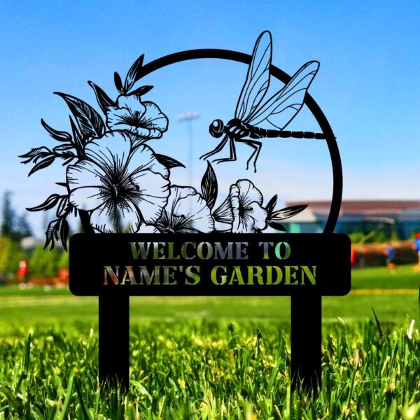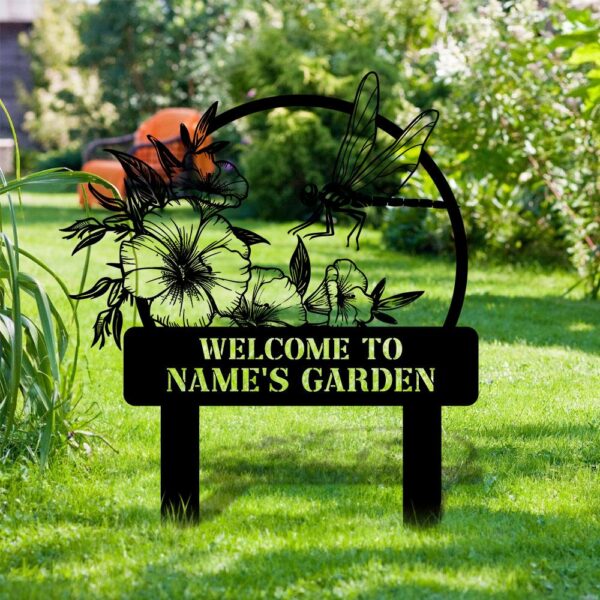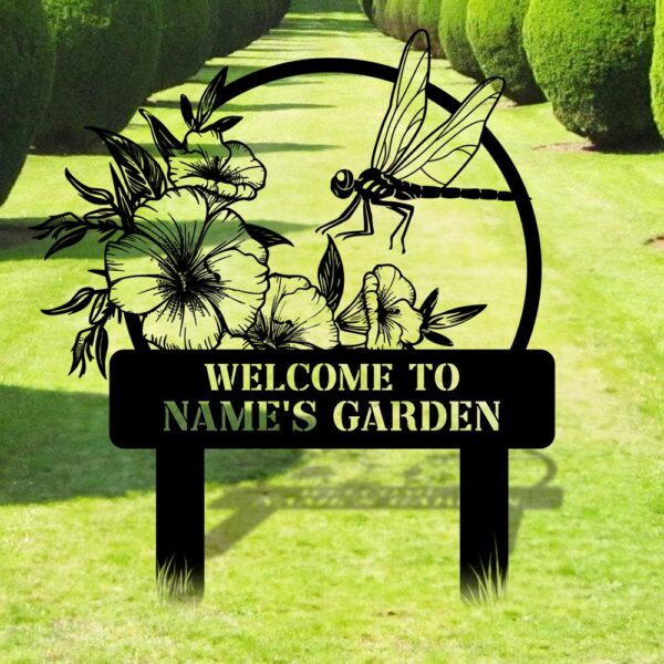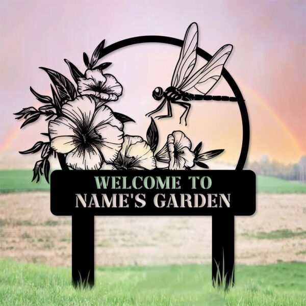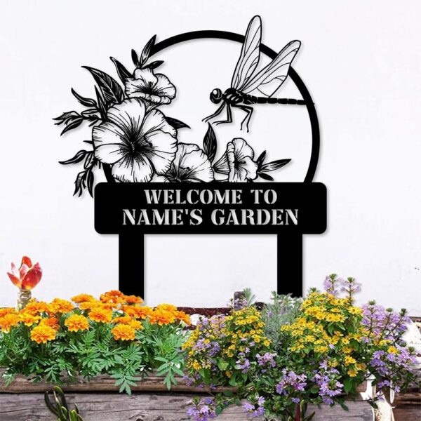 Welcome To My Garden Sign, Personalized Dragonfly Garden Stake, Metal Garden Sign, Gardener Name Sign, Gardener Gift, Dragonfly Yard Decor